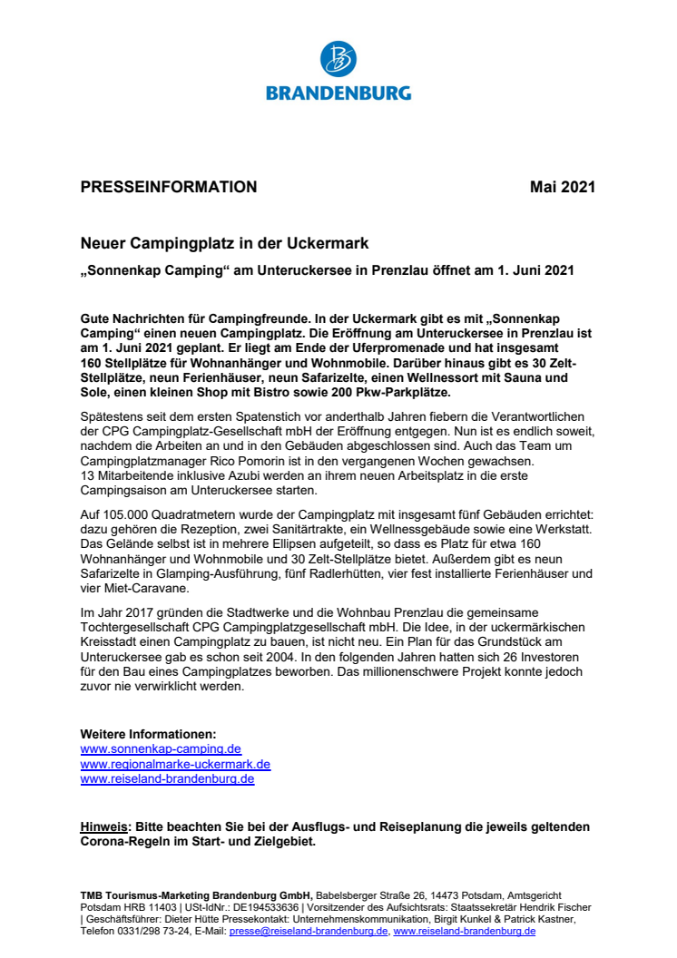 E-Mail an __email__ gesendet. Bitte klicken Sie den Bestätigungslink, um TMB Tourismus-Marketing Brandenburg GmbH zu folgen.