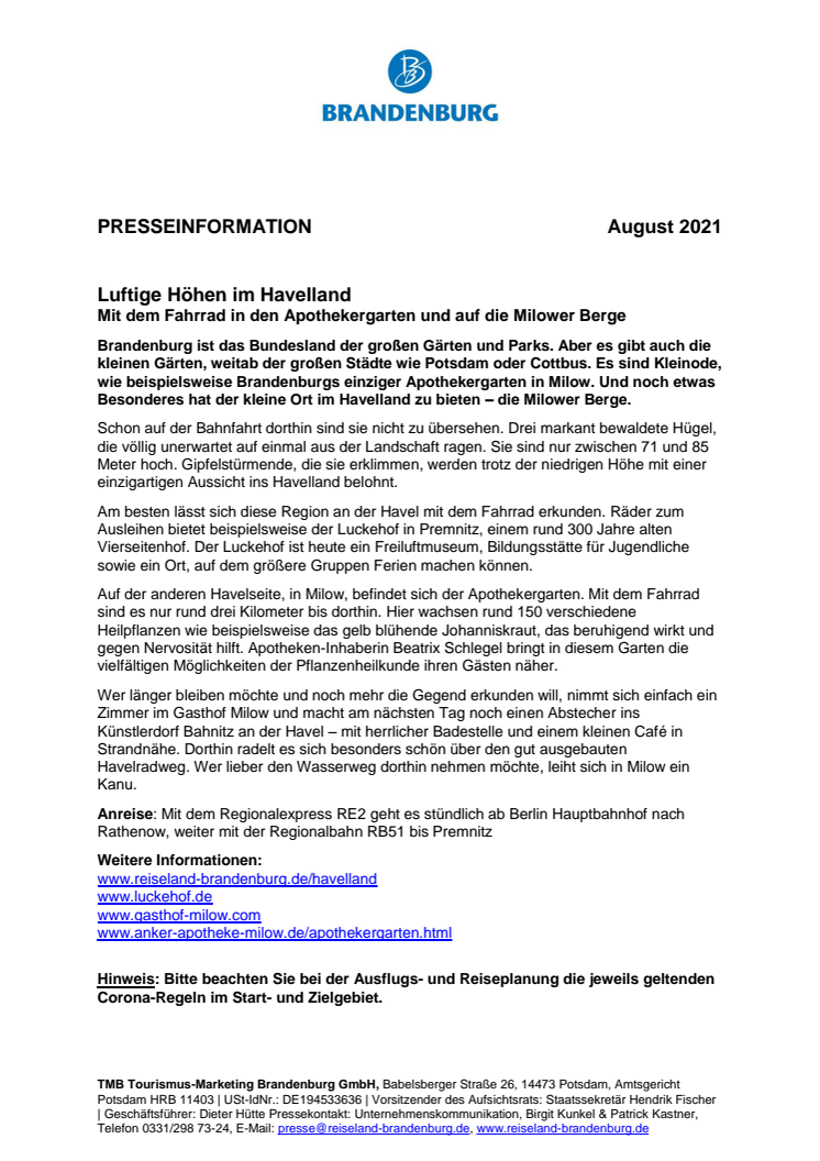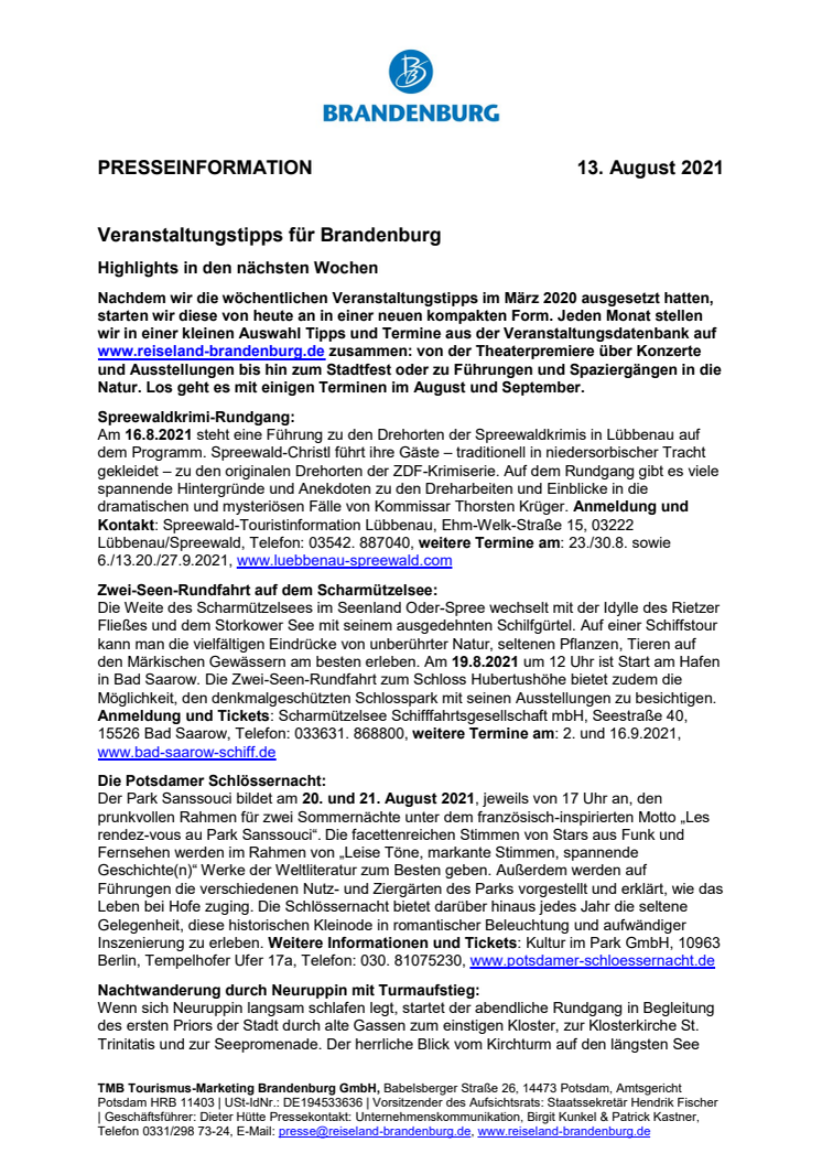 E-Mail an __email__ gesendet. Bitte klicken Sie den Bestätigungslink, um TMB Tourismus-Marketing Brandenburg GmbH zu folgen.