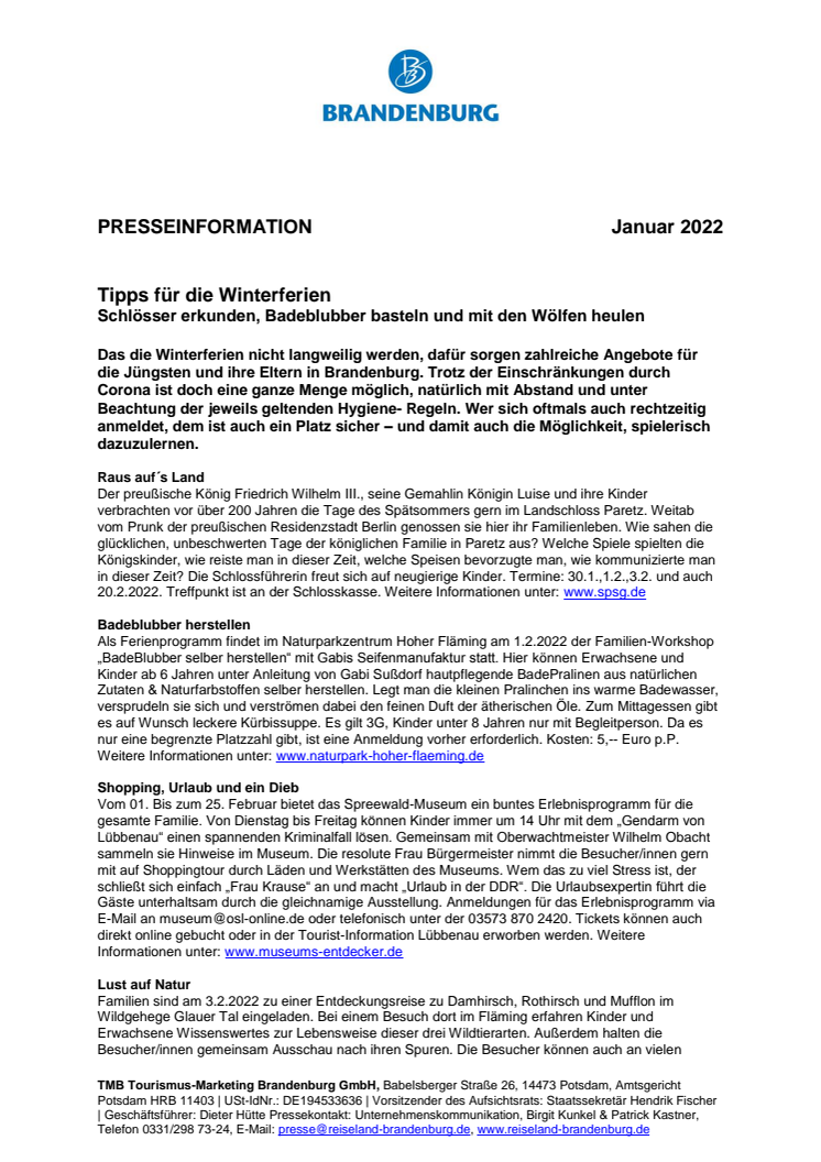 E-Mail an __email__ gesendet. Bitte klicken Sie den Bestätigungslink, um TMB Tourismus-Marketing Brandenburg GmbH zu folgen.
