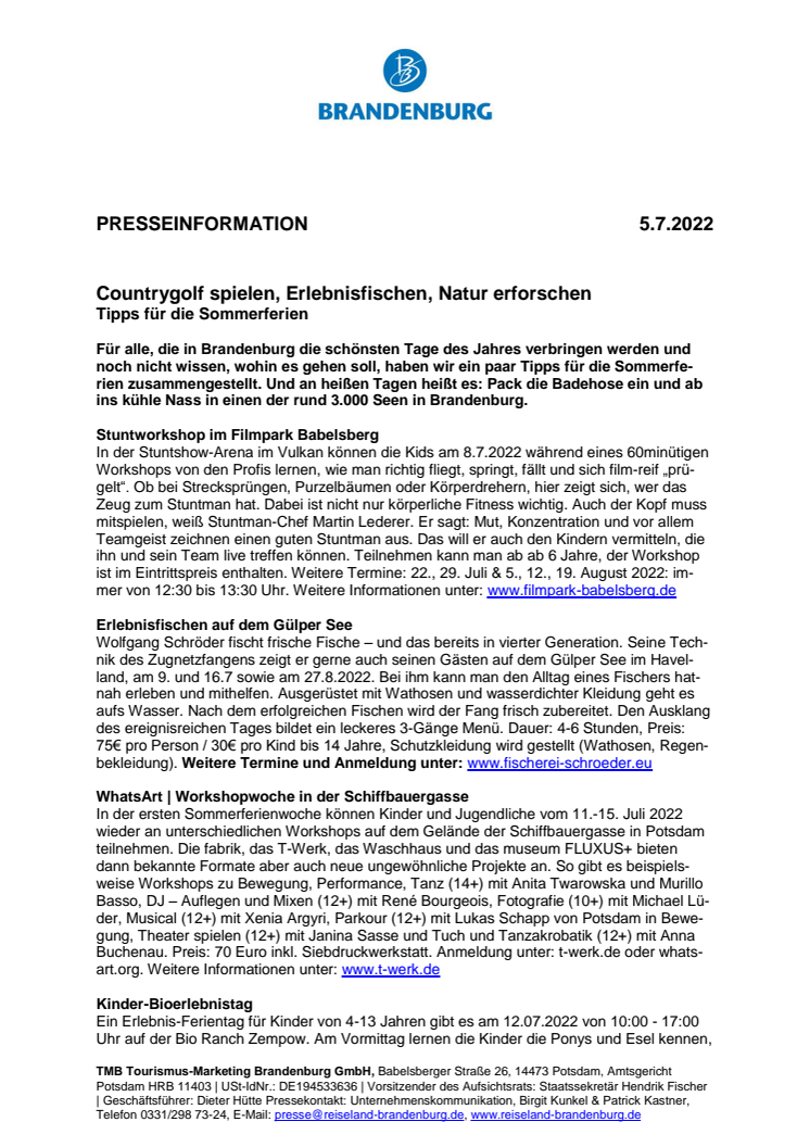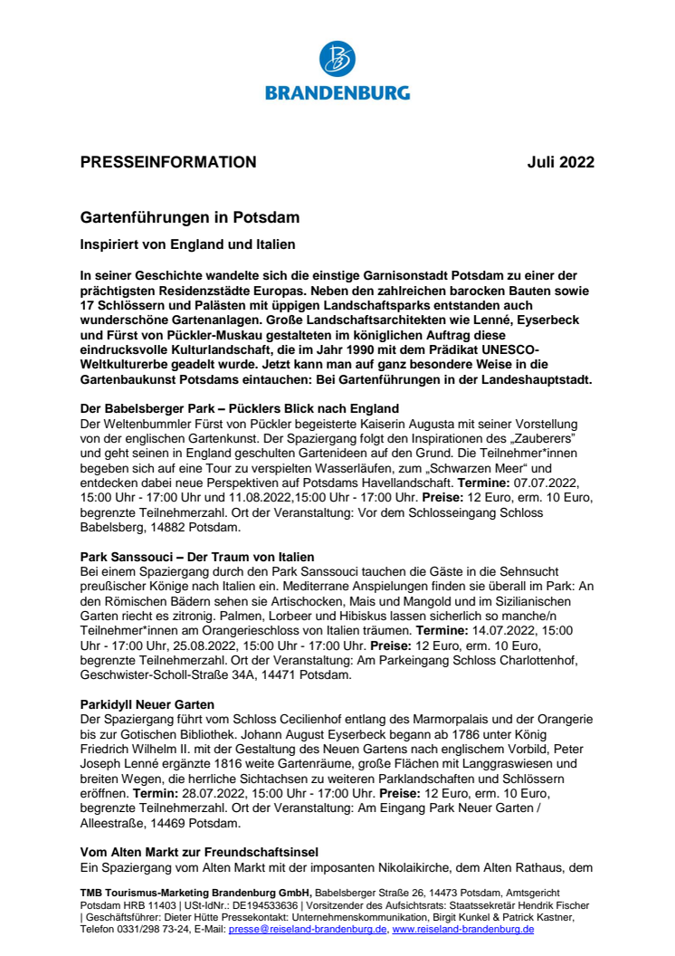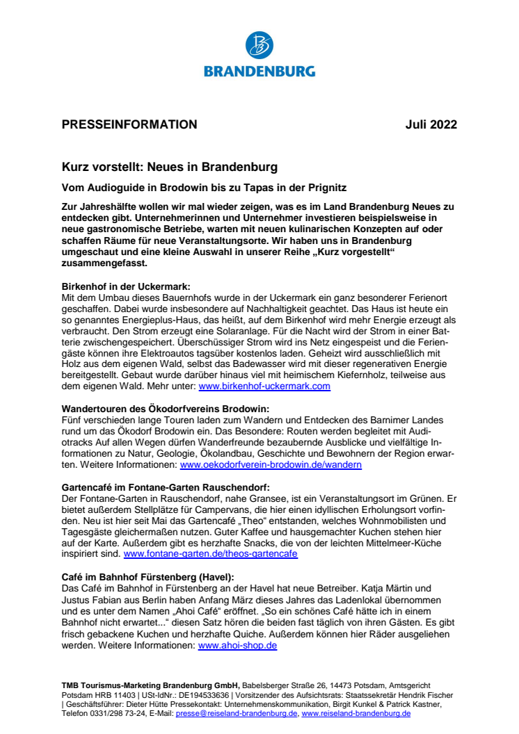 E-Mail an __email__ gesendet. Bitte klicken Sie den Bestätigungslink, um TMB Tourismus-Marketing Brandenburg GmbH zu folgen.