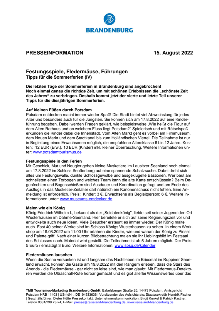 • Tourismus 1. Halbjahr im Land Brandenburg