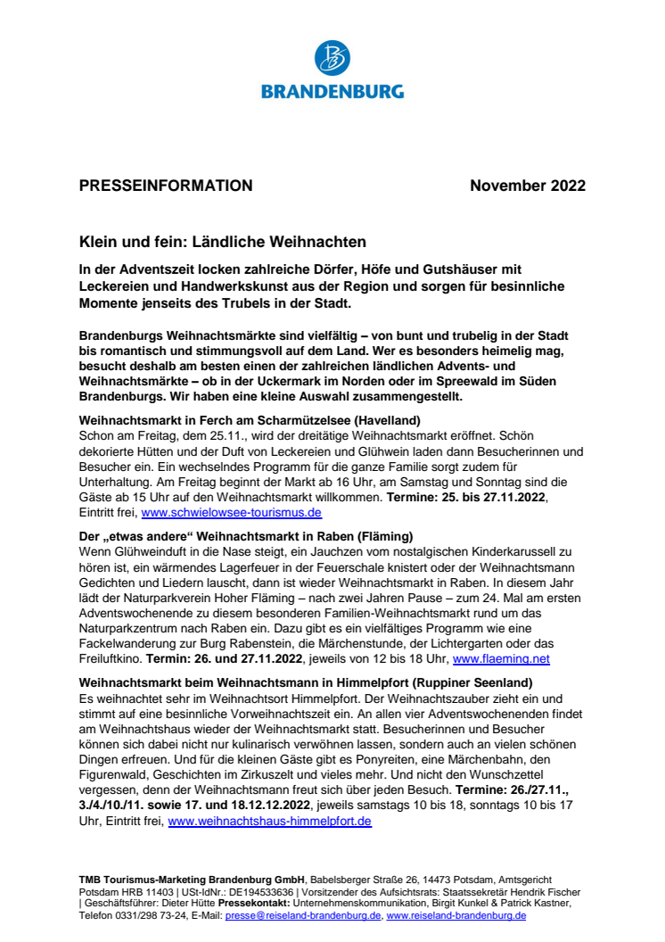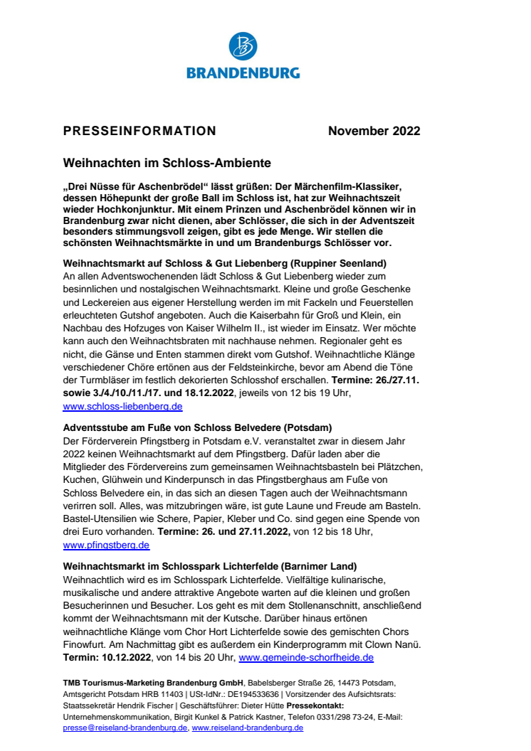 E-Mail an __email__ gesendet. Bitte klicken Sie den Bestätigungslink, um TMB Tourismus-Marketing Brandenburg GmbH zu folgen.