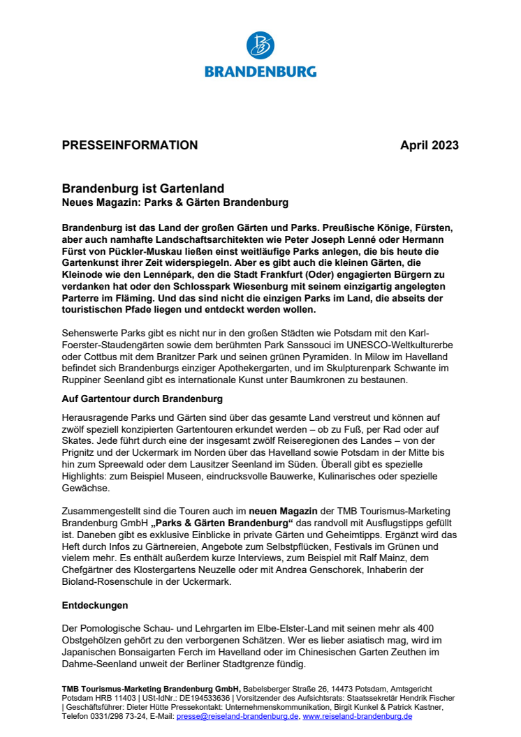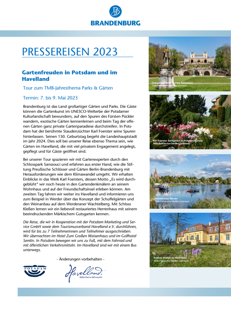 E-Mail an __email__ gesendet. Bitte klicken Sie den Bestätigungslink, um TMB Tourismus-Marketing Brandenburg GmbH zu folgen.