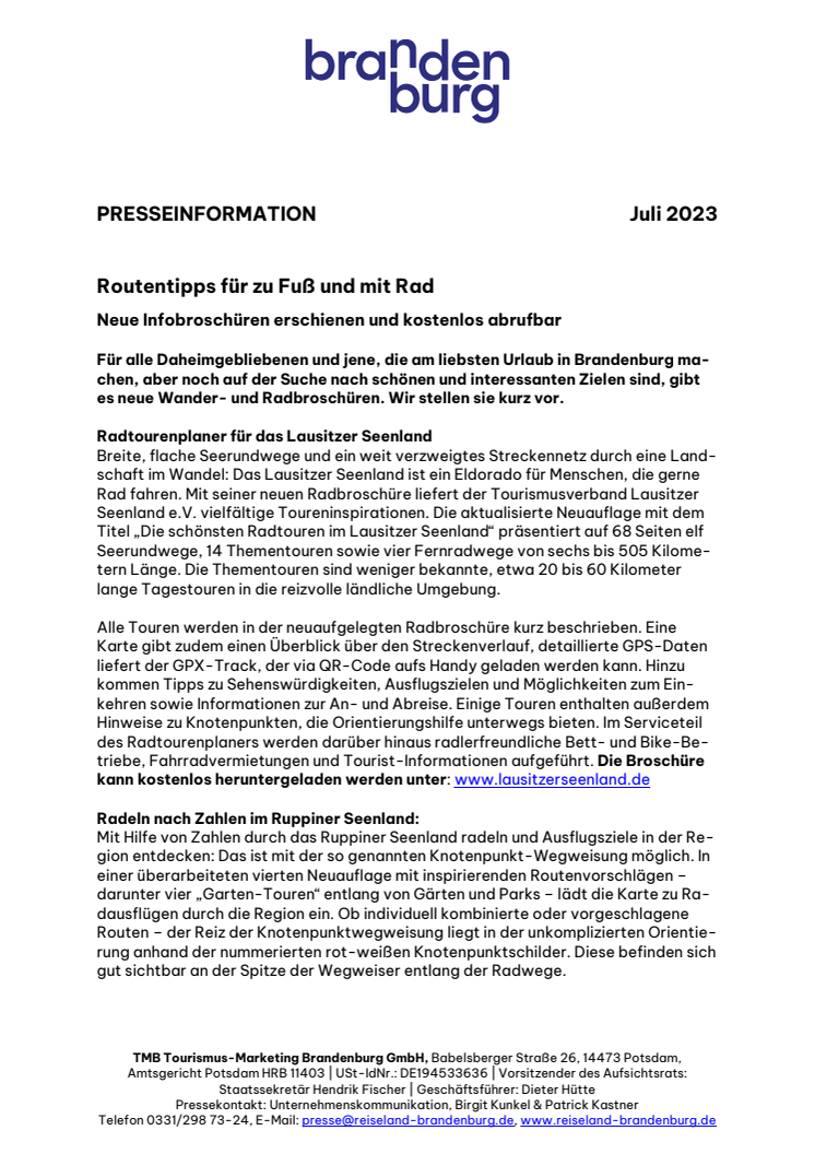 Für alle Daheimgebliebenen und jene, die am liebsten Urlaub in Brandenburg machen, aber noch auf der Suche nach schönen und interessanten Zielen sind, gibt es neue Wander- und Radbroschüren. Wir stellen sie kurz vor.