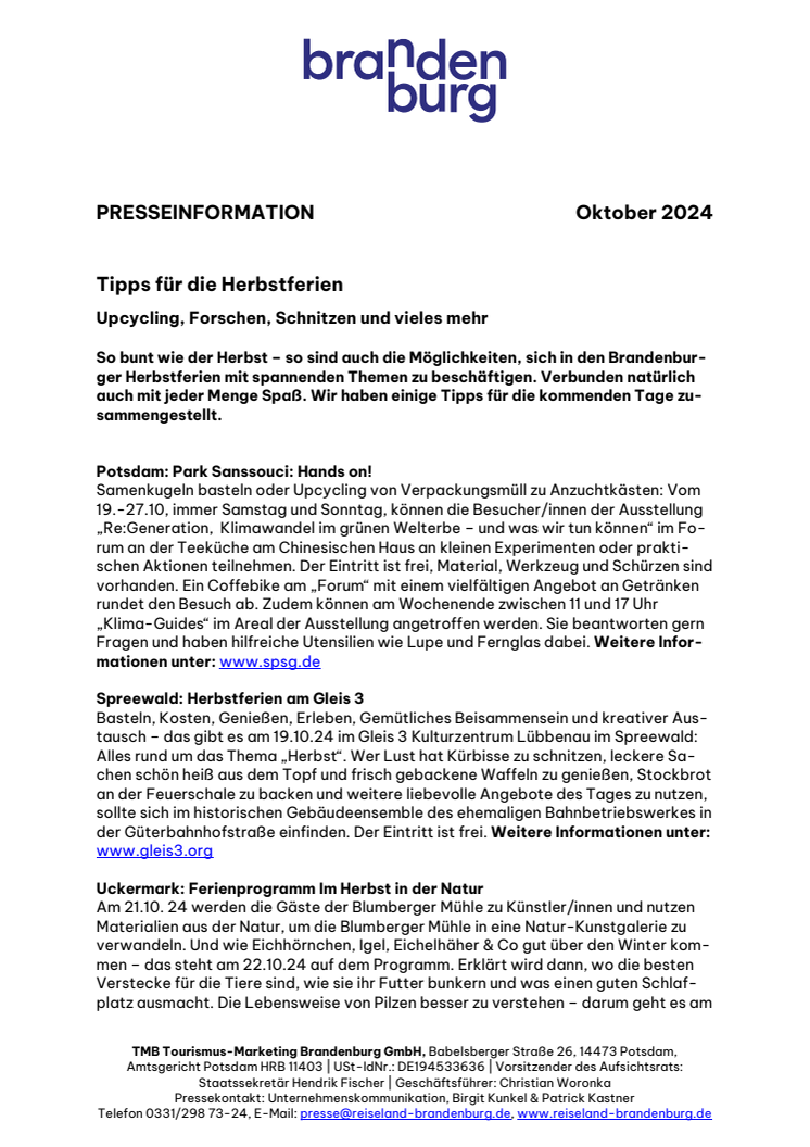 service@reiseland-brandenburg.de | www.reiseland-brandenburg.de