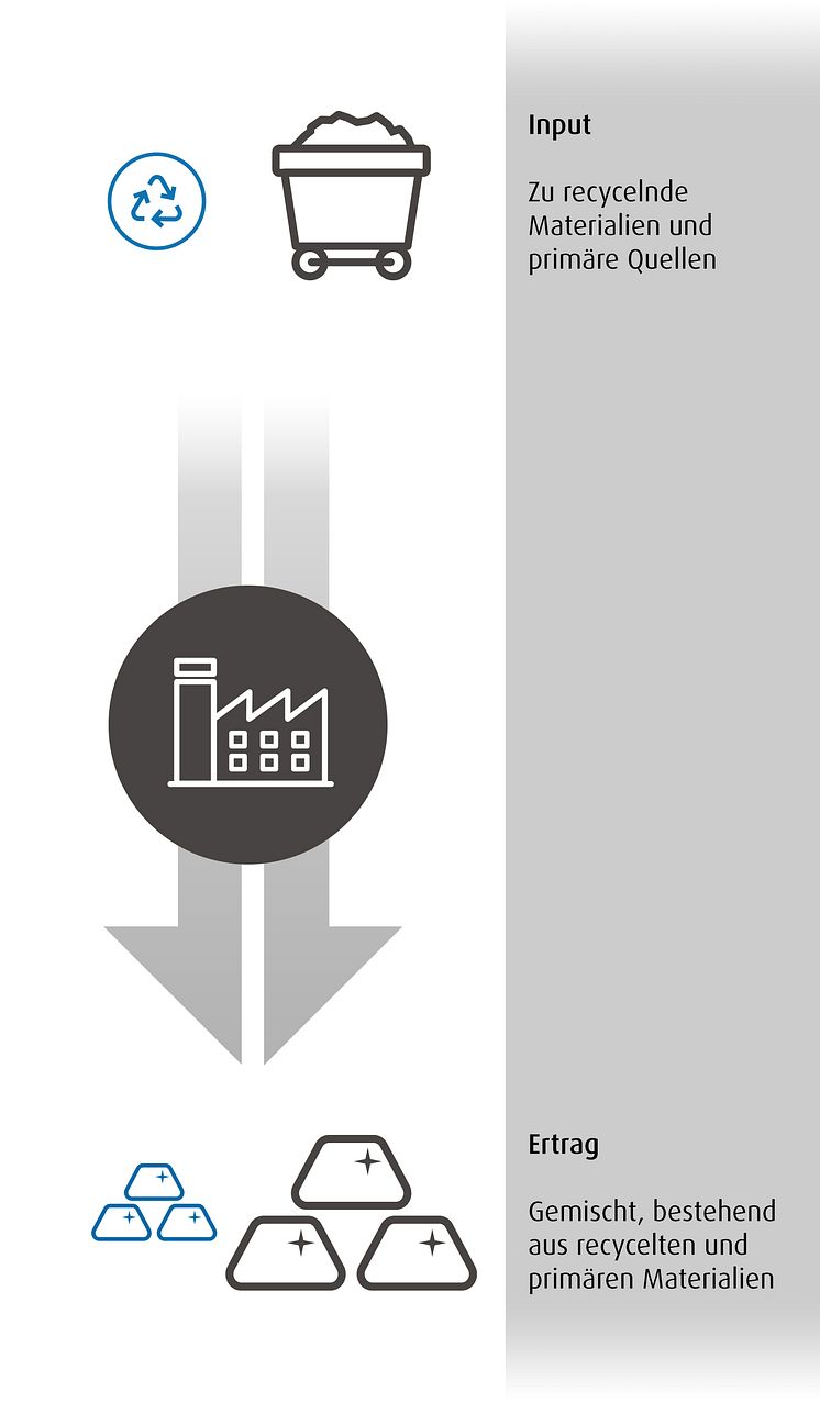 Das Massenbilanzzertifikat verarbeitet Primär- und Recyclingmaterialien gemeinsam und weist den Anteil des Recyclingmaterials in einer rollierenden Bilanz zu.