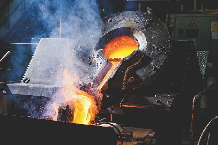 / Ofen, der einen Prozess zum kontinuierlichen Gießen (Silber) speist