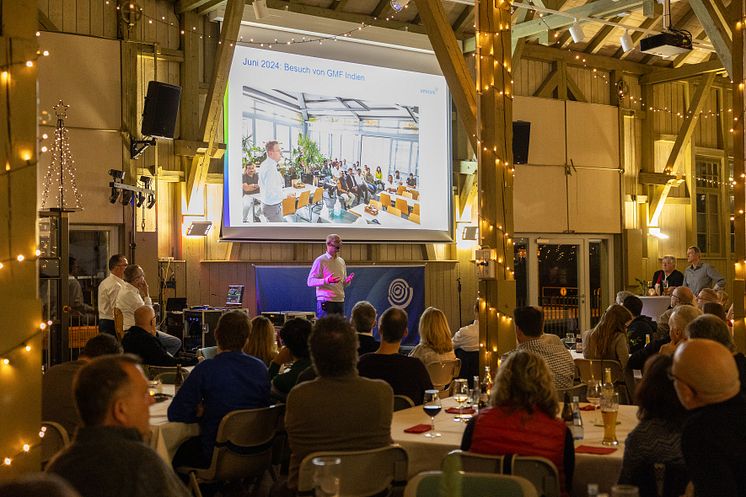 Nach dem offiziellen Teil eröffnete die fünfköpfige Geschäftsleitung, gekleidet in blauem Kittel und Schutzbrille, die anstehende Karaoke-Session mit einer unterhaltsamen Performance des Liedes „Bruttosozialprodukt“. Dieser Auftritt sorgte nicht nur für herzhafte Lacher, sondern animierte viele Anwesende dazu, selbst zum Mikrofon zu greifen und ihr gesangliches und oftmals auch komödiantisches Talent unter Beweis zu stellen. Die durchweg positive Stimmung führte dazu, dass viele Mitarbeiter auch nach dem offiziellen Ende noch blieben, um den Abend in geselliger Runde ausklingen zu lassen.