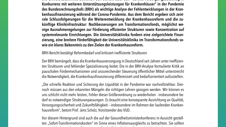 Universitätsklinika zum BRH-Bericht: zielgerichtete Finanzierung, Förderfähigkeit im Transformationsfonds und Reformklarheit
