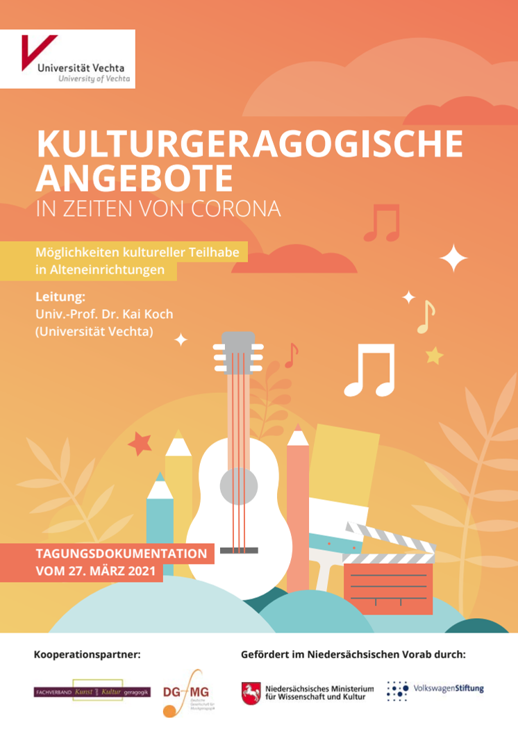 Die vom Fach Musik der Universität Vechta am 27. März initiierte Online-Tagung „Kulturgeragogische Angebote in Zeiten von Corona“ (Ltg. Prof. Dr. Kai Koch) wollte – gerahmt von Fachvorträgen – gelingende Praxisbeispiele präsentieren und zur Diskussion stellen, die trotz Coronapandemie kulturelle Teilhabe für Menschen in Alteneinrichtungen in Präsenz oder in digitalen Formaten ermög