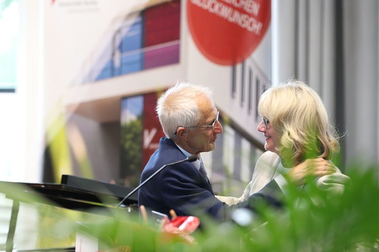 Prof. Dr. Dr. h.c. Joachim Kahlert und Prof.in Dr.in Susanne Miller (Universität Bielefeld) - Auf Antrag des Studienfaches Sachunterricht hat die Fakultät II der Universität Vechta Prof. Dr. habil. Joachim Kahlert die Würde eines Ehrendoktors verliehen. Zahlreiche Wegbegleiterinnen und -begleiter feierten mit dem Wissenschaftler bei einem Festakt im Musiksaal der Universität Vechta. Kahlert beeinflusste mit zahlreichen Veröffentlichungen, Projekten und Kooperationen die Grundschuldidaktik, insbesondere die Didaktik des Sachunterrichts im deutschen Sprachraum, maßgebend. Begonnen hat Kahlerts wissenschaftliche Karriere als Student in Vechta.
