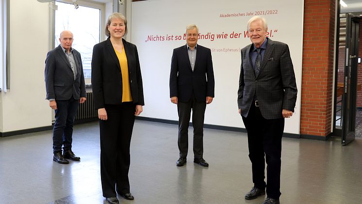 v.l. Helmut Dornieden (stellvertretender Vorsitzender), Prof. Dr. Verena Pietzner (Universitätspräsidentin), Christof Pekeler (UGV-Kassenwart) und Uwe Bartels (Vorsitzender)