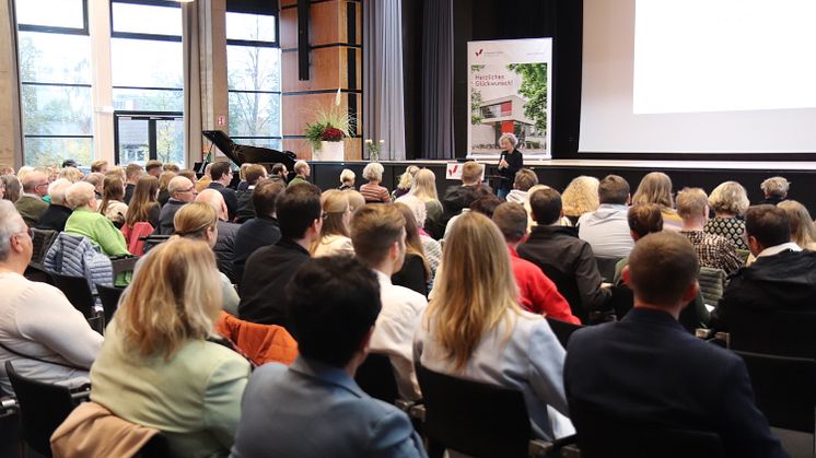 Dabei habe die Kohorte einige wirklich enorme Herausforderungen zu meistern, erinnerte Prof.in Dr.in Martina Döhrmann in ihrer Rede. „Sie hatten mehr Hürden zu überwinden als Ihre Vorgängerinnen und Vorgänger“, sagte die Studiendekanin der Fakultät II und geht auf die Corona-Pandemie ein. „Sie haben einen Wandel in der Universitätskultur erlebt, den wir alten Hasen nie für möglich gehalten hätten: Notbetrieb, eine Uni, die niemand betreten darf, Online-Lehre mit den ersten Online-Sitzungen, Prüfungen mit Maske, Mindestabstand zu Ihren Kommilitoninnen und Kommilitonen, Vor-Ort-Lehre nur für Geimpfte, Genesene und Getestete.“ Aber die jetzigen Alumni hätten auch die Zeit des Studiums nach der Pandemie erlebt; die Zeit der Freude, wieder zur Uni kommen zu dürfen, gemeinsam lernen zu dürfen. „Sie haben sich die Uni zurückerobert“ – die Hörsäle, die spontanen Treffen und die Feten hätten unter anderem auch dazugehört. „Aber Sie werden Ihr Studium auch sicher immer mit der Pandemiezeit verbinden. Und eben auch damit, dass Sie es geschafft haben, dass Sie Ihr Studienziel trotz dieser schwierigen Bedingungen erreicht haben. Und darauf können Sie wirklich stolz sein!“. Dem schlossen sich die Vertretenden des Allgemeinen Studierendenausschlusses an. Leon Isenberg, Nicolas Koopmann und Charlotte Weber sprachen den (ehemaligen) Kommilitonen ihre Glückwünsche aus. Tatsächlich wäre die Pandemie und die damit einhergehenden Einschränkungen für viele Studierende herausfordernd gewesen – und auch das Ankommen auf dem Campus hätte seine Zeit gebraucht. Doch die Studierenden hätten den Campus wieder mit Leben gefüllt: „Ohne euch, die sich einbringen, mitgestalten oder auch einfach mit Freude die Angebote wahrnehmen, wäre das Leben an der Uni deutlich ärmer. Dafür gebührt euch ein riesiges Dankeschön“ sagte Isenberg. „Was man über die Schriften von Hermann Hesse sagt, trifft auch auf euer Studium zu: es war mal tiefgründig, mal verwirrend, und manchmal hat man sich gefragt, warum es so viele Metaphern für eine einfache Idee braucht. Aber genau wie bei Hesse liegt auch im Studium die Schönheit in der Reise selbst.“