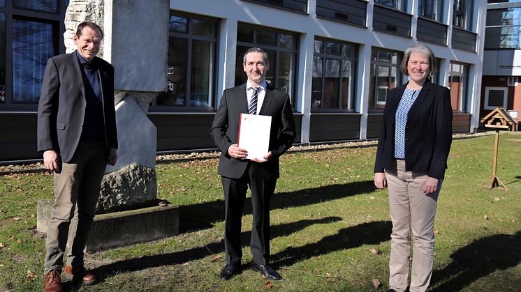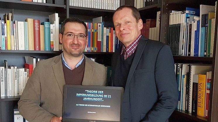 Nummer Fünf seines selbst aufgestellten Sieben-Punkte-Plans ist nun erreicht: Dr. Rami Georg Johann hat seine Disputation bestanden und damit erfolgreich seine Promotion abgeschlossen. Der Titel seiner Arbeit lautet: „Theorie der Imperiumsbildung im 21. Jahrhundert. Ein theoriegeleiteter Forschungsansatz zur Betrachtung aktueller Phänomene in den internationalen Beziehungen.“ Die entsprechend Urkunde hat er von Universitätspräsidentin Prof.in Dr.in Verena Pietzner im Beisein seines Doktorvaters Prof. Dr. Peter Nitschke erhalten.