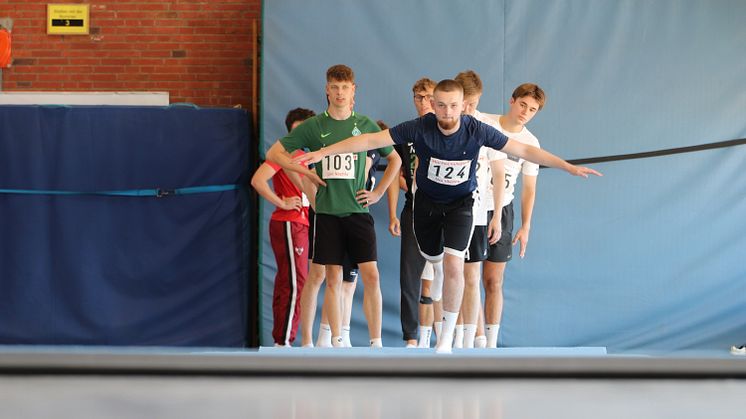 Der Tag der Prüfung sei schon immer ein Happening, meint Prof. Dr. Gerd Thienes, umso schöner sei es, „wenn nahezu das gesamte Sportkollegium zusammenkommt und der Fachrat so wunderbar anpackt“, führt der stellvertretende Sprecher des Fachs aus. In Präsenz könne man schließlich auch viel besser die Vorzüge des Sportstudiums an der Universität Vechta vermitteln. Die Prüfung als solche spiegele den Anspruch des Studiums gut wider – „wer die Übungen hier im vorgegebenen Rahmen absolvieren kann, schafft auch den praktischen Teil der curricular verankerten Anforderungen im Studium“, erläutert Thienes. Es sei aber schon erstaunlich: „Auch wenn sich Viele auf die Prüfung gut vorbereitet zu haben scheinen, so gibt es doch etliche Teilnehmende, welche ,einfach mal so‘, ohne die entsprechenden Disziplinen überhaupt zu kennen, vorbeikommen.“ Wer gern Sportwissenschaften studieren und eventuell Lehrkraft werden möchte, der habe unter anderem auf der Homepage des Fachs bereits lange im Vorfeld die Möglichkeit, sich über die Voraussetzungen der Prüfung zu informieren.