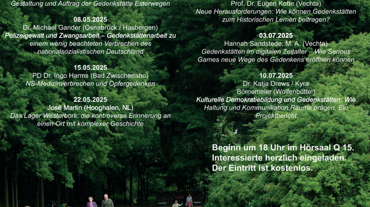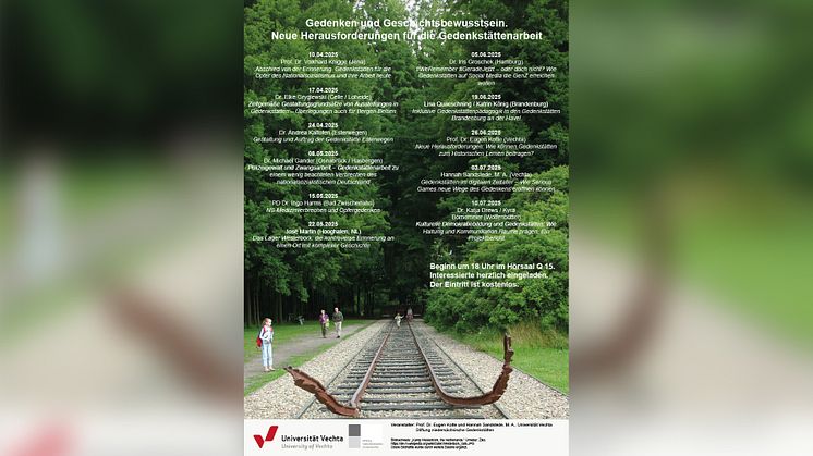 Angesichts eines zunehmenden Antisemitismus und sich ausbreitender rechtsextremer Angebote erscheinen die damit angestoßenen Neujustierungen der Gedenkstättenarbeit dringender denn je, so Prof. Dr. Eugen Kotte, Geschichtsdidaktiker und Mitveranstalter der Vortragsreihe: „In unserer Gegenwart, in der antisemitische Aktivitäten bis hin zu gewaltsamen Übergriffen, auch motiviert durch politisch-militärische außenpolitische Konflikte, wieder zu beobachten sind, und rechte Gesinnungen offenen Anklang bis in junge Generationen hinein finden, wird eine zeitgemäße Gedenkstättenarbeit, die insbesondere junge Leute, auch und besonders Schülerinnen und Schüler, handelnd miteinbezieht, immer wichtiger.“ Um die aus den veränderten Bedingungen resultierenden Anforderungen an die Gedenkstättenarbeit zu beleuchten, bietet die von Prof. Dr. Eugen Kotte und Hannah Sandstede in Kooperation mit der Stiftung niedersächsische Gedenkstätten (https://www.stiftung-ng.de/de/) an der Universität Vechta organisierte Vortragsreihe umfassende Einblick in die aktuelle Debatte um Erinnerungskultur und Geschichtsbewusstsein durch Gedenkstättenarbeit als Grundlagen eines adäquaten Umgangs mit gegenwärtigen Herausforderungen.