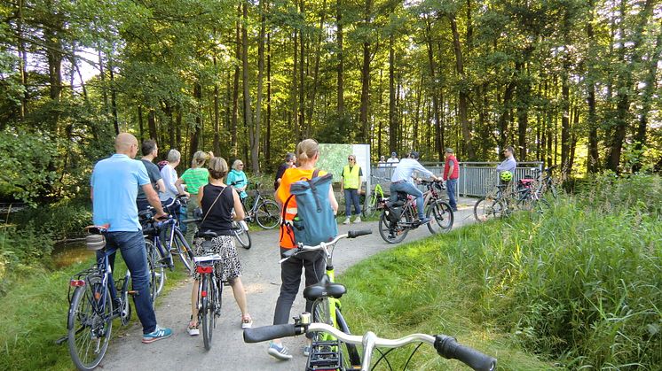Etwa auf der „Klima-Tour“ in Vechta. Mit dem Fahrrad erkundeten die Teilnehmenden, wo sich der Klimawandel in ihrem eigenen Lebensumfeld bereits auswirkt. Die Route wurde vom SSVC gemeinsam mit dem Klimaschutzbeauftragten der Stadt Vechta ausgearbeitet und führte vorbei an sichtbaren Merkmalen von Dürre und Orten mit spürbar unangenehmer Hitzeentwicklung. Auch Maßnahmen zur Klimafolgenanpassung, etwa Vorsorge gegenüber Starkregen, wurden vorgestellt und die Teilnehmenden diskutierten über eigene Ideen. Beobachtungen und Vorschläge aus der Bevölkerung werden dann in einer digitalen Karte, bei der alle mitmachen dürfen, eingetragen (http://klimakarte.terrifica.eu/).