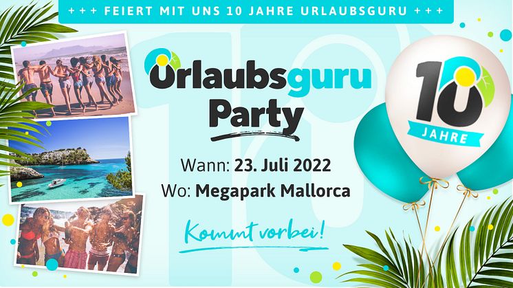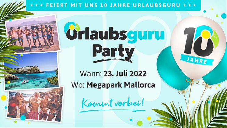 Holzwickede. Vor zehn Jahren hatten Daniel Krahn und Daniel Marx die Idee zu Urlaubsguru. Am 23. Juli 2022 feiert das Unternehmen auf Mallorca den ersten runden Geburtstag und lädt dazu das gesamte Urlaubsguru-Team ein. Die Kosten für die Flüge, die Unterkunft und die Party übernimmt das Unternehmen. Die Geburtstagsfeier findet am Samstagabend im Megapark direkt an der Platja de Palma statt. „Nach den letzten herausfordernden Jahren für das Unternehmen wollen wir dieses Jubiläum gebührend feiern und was passt da besser als eine Party im Megapark? Die zehn Jahre haben sich angefühlt wie eine wilde Achterbahnfahrt. Wir haben viele Höhen aber auch Tiefen durchlebt und freuen uns, dass es endlich wieder bergauf geht und wir wieder Reisen vermitteln dürfen“, fasst Krahn, Mitgründer und CEO, zusammen.