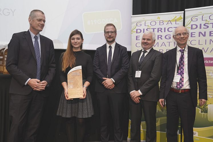 Dietrich Becker (Deutscher Botschafter in Island), Marta Rudzka (Projektingenieurin), Dominik Gehling (Technischer Leiter, Veolia Energie Deutschland), Werner Lutsch (Geschäftsführer AGfW) und Dr. Robin Wiltshire (Vorsitzender der diesjährigen Awards)