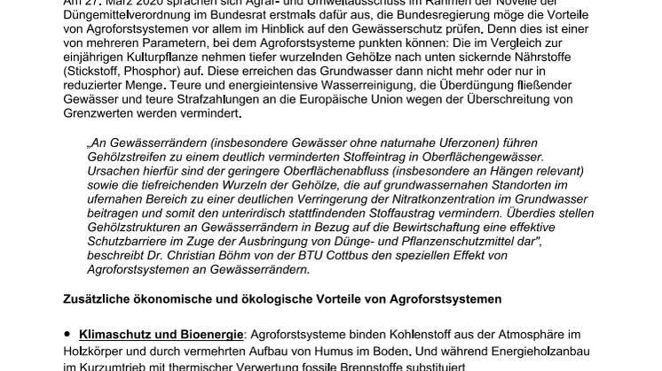 „Agroforstwirtschaft ist ein innovatives Zukunftsthema, denn es kann langfristig einen wichtigen Beitrag zum Ressourcenschutz in der Landwirtschaft leisten. Insbesondere die nachhaltige Biomasse-Erzeugung, der Schutz der Gewässer vor Schadstoffeinträgen und die Bewahrung der Biodiversität haben für Veolia als Umweltdienstleister einen herausragenden Stellenwert“, erläutert Sylke Freudenthal, Vorstand, das Engagement der Veolia Stiftung.