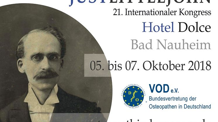Der 21. VOD-Kongress ist dem Denken und Schaffen dieses wachen Geistes gewidmet – unter dem Motto „JUSTLITTEJOHN“ lädt der VOD vom 05. bis 07. Oktober 2018 ins Hotel Dolce in Bad Nauheim ein. An der Schwelle zum 20. Jahrhundert entwickelte Dr. Martin Littlejohn einen osteopathischen Ansatz, der auch im 21. Jahrhundert unvermindert Relevanz hat. In Vorträgen und Workshops von renommierten Referenten wie z.B. Jane Eliza Stark DO (Kanada), Christian Fossum DO (Norwegen), Jo Buekens MSc DO (Belgien), Dr. med. Roger Weis (Luxemburg), Christian Hartmann und Dr. phil. Albrecht Kaiser DO (Deutschland) werden Littlejohns Lehren und Praktiken aus verschiedenen Perspektiven beleuchtet und in die heutige Zeit übertragen. Das umfangreiche Programm inklusive Get-together-Party, festlichem Abend und dem am 04. Oktober vorgeschalteten wissenschaftlichen Tag in Kooperation mit der Akademie für Osteopathie ist auf der Website www.osteopathie-kongress.de einzusehen.