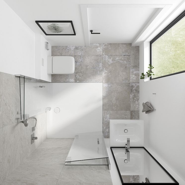 Die BetteFlat ist eine Duschfläche aus glasiertem Titan-Stahl und kann auch für die barrierefreie Nutzung von Badezimmern verwendet werden. Sie ist bodeneben installierbar und kann bei kleinen Grundrissen 50 Prozent ihrer Fläche für überlagernde Bewegungsflächen zur Verfügung stellen. Zudem schützt sie die Anwender:innen mit Rutschhemmung nach Bewertungsgruppe B, ist pflegeleicht und robust – perfekt für den Einsatz in kleinen Bädern. Foto: Bette