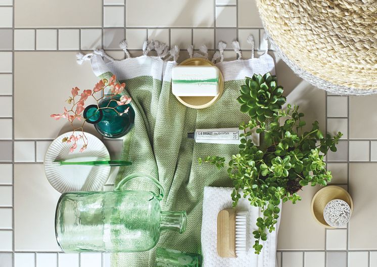 Neben der Farbe spielen auch Materialien eine wichtige Rolle, wenn es darum geht, ein saisonales Interieur zu gestalten. Für eine Frühlings-Anmutung eignen sich hierfür natürliche und leichte Materialien wie Holz, Rattan, Leinen und Baumwolle sowie natürliche, pastellige Farben. (Foto: burgbad)