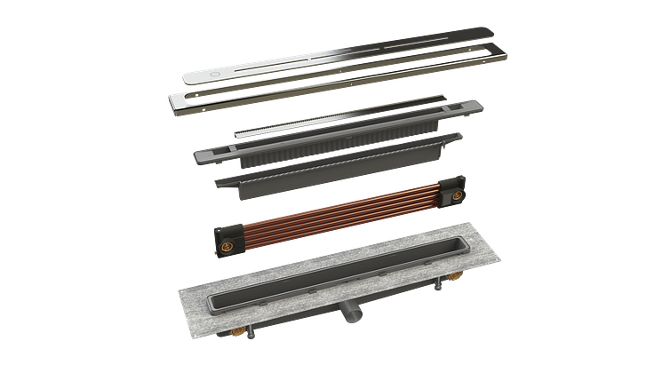 Noch immer fließt viel warmes Wasser einfach ungenutzt in den Abfluss. Die Kaldewei Duschrinne „FlowLine Heatrecovery“ nutzt die Wärme des abfließenden Duschwassers, um damit das kalte Frischwasser auf dem Weg zur Duscharmatur vorzuwärmen. Ein in den Abfluss integrierter Wärmetauscher sorgt so für eine effiziente Wärmerückgewinnung. Foto: Kaldewei. Foto: Kaldewei