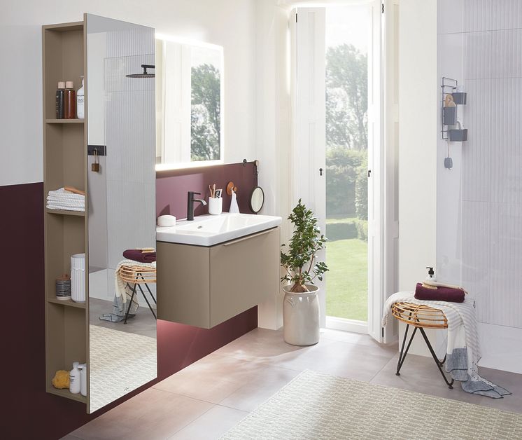Komplett wird die Stauraum-Optimierung im kleinen Badezimmer mit einem Lichtspiegel, der zu jeder Tageszeit das richtige Licht erzeugt – von Funktions- bis Stimmungslicht. Subway 3.0 von Villeroy & Boch umfasst eckige Spiegel in verschiedenen Größen und zwei runde Spiegel mit Aluminiumrahmen in White oder Black Matt. Das umlaufende, stufenlos dimmbare LED-Lichtband kann entweder mit Touch-Sensor geschaltet oder mit einem separat erhältlichen ZigBee®-Kit in alle gängigen Smart-Home-Systeme eingebunden werden. Foto: Villeroy & Boch