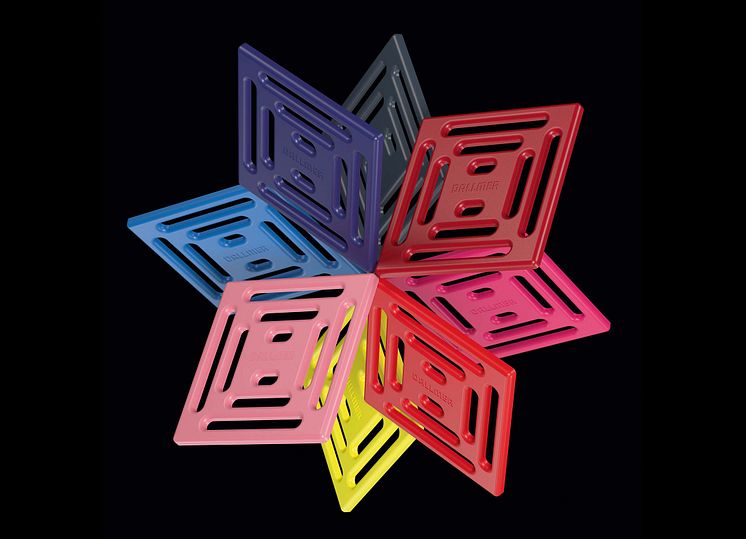 Bunt war die Lieblingsfarbe von Bauhaus-Gründer Walter Gropius. Auch das moderne Badezimmer bevorzugt aktuell tönendes Allerlei: Nun gibt es sogar für die Dusche unübersehbare Farb-Highlights in Form von lackierten Bodenrosten. (Foto: Dallmer; ColourCollection)
