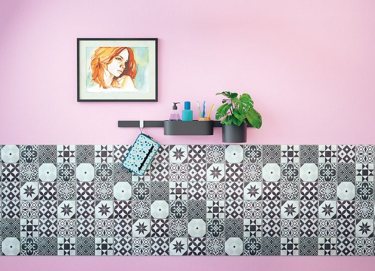 Farbcocktail vom Feinsten. Diesen Wand-Mix muss man sich erst einmal ausdenken. Für Nachahmer*innen: Wenn wie hier Farben nicht einfach willkürlich gewählt, sondern vielmehr mit System wiederholt werden (zum Beispiel Haare und Zahnputzbecher jeweils in Orange), dann steht der Zusammenstellung vieler verschiedener Tonarten eigentlich nichts im Wege. Es sei denn, man ist partout nicht auf „Bunt“ eingestellt. Keine kreativen Grenzen kennt in jedem Fall das modulare Aufbewahrungssystem. Die einzelnen Komponenten in den trendigen Oberflächen Mattweiß und Mattschwarz passen überall. Außerdem sind sie austauschbar, und die geklebte Befestigungsleiste an der Wand lässt sich rückstandslos wieder entfernen. (Foto: Hansgrohe; WallStoris)