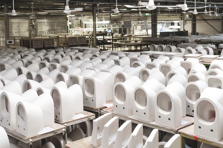 Villeroy & Boch setzt sich aktiv für gesellschaftlichen Fortschritt, Umweltschutz und soziale Gerechtigkeit ein, um sowohl die ökologische Effizienz zu steigern als auch sozial verantwortlich zu handeln. Ein Schwerpunkt liegt auf der Erreichung von Klimaneutralität. Ziel ist es, die Wettbewerbsfähigkeit langfristig zu sichern und dabei über die regulatorischen Anforderungen hinauszugehen. Schwerpunkte sind dabei die Verbesserung der Energie- und Rohstoffeffizienz, die Ressourcenschonung durch Optimierungen im Produktionsprozess, die Reduzierung der Abwassermenge und -belastung sowie die Reduzierung von CO₂-Emissionen und weiterer Abgase. Foto: Villeroy & Boch