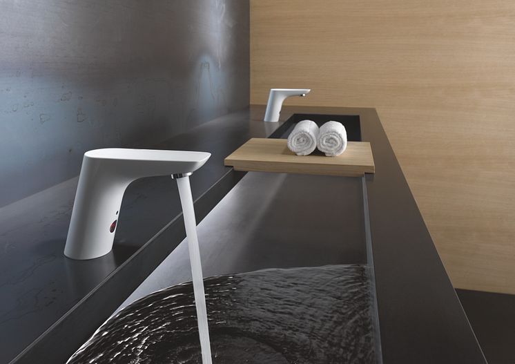 Auch im Privathaushalt stellen berührungslose Armaturen den Wasserfluss sensorgesteuert an und ab. Das Wasser fließt also nur dann, wenn es wirklich genutzt wird. Manche Armaturenhersteller versprechen dadurch Einsparungen bis zu 70 Prozent. (Foto: Kludi; Kludi Balance)