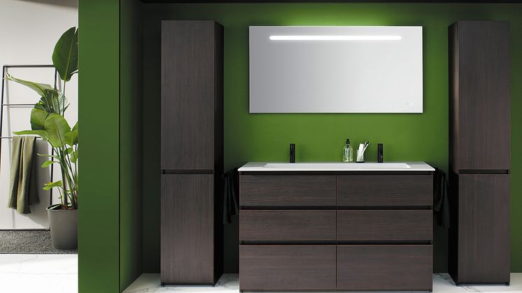 Ziemlich gute Laune verbreiten zudem runde Formen, ob bei Spiegeln, Keramik, Leuchten oder Accessoires. Expressive Farb-Statements dürfen ebenfalls sein, um dem Raum Charakter und Individualität zu verleihen. Sei es mit einer Einrichtung in frischem Salbei, unbekümmertem Pink am Unterschrank sowie Waschschalen in vergnügt-violettem Sweet Love oder blau-beflügeltem Deep Dream. Oder durch eine äußerst kreative Wandgestaltung mit Strukturtapete, Bambus oder Fliesen, die allein dazu dient, ein Ablagekonzept schön bunt in Szene zu setzen.