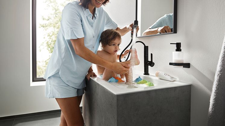 Dusche besetzt? Macht gar nichts, wenn am Waschbecken eine Armatur mit ausziehbarem Kopf für die Haarwäsche wartet. Noch dazu kann man damit dem Kleinkind die Füße abspülen oder nach dem Spaziergang Gummistiefel säubern. Bei Bedarf und Knopfdruck wechselt der Strahl von sanft auf füllig, so wie es der Einsatz gerade erfordert. Neben der Funktionalität überzeugen die neuesten Wasserspender mit edlen, schlanken Konturen, verschiedenen Höhen und Modellen für die Auf- bzw. Unterputzmontage. Die Oberflächen sind weiterhin vielfältig. Den Ton jedoch gibt eindeutig Schwarz an.