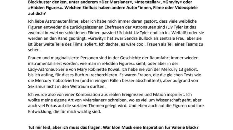Mit ”Das ferne Licht der Sterne” trifft Laura Lam den Nerv der Zeit und fesselt uns nicht nur mit ihrer außergewöhnlichen Geschichte, sondern lässt uns das eigene Handeln überdenken. Inspiriert von “Hidden Figures” und der wahren Geschichte der Mercury-13 entwirft sie einen feministischen Science-Fiction-Thriller, der Probleme wie Macht und das Recht der Frauen zur Teilhabe an der Gestaltung der Welt thematisiert.