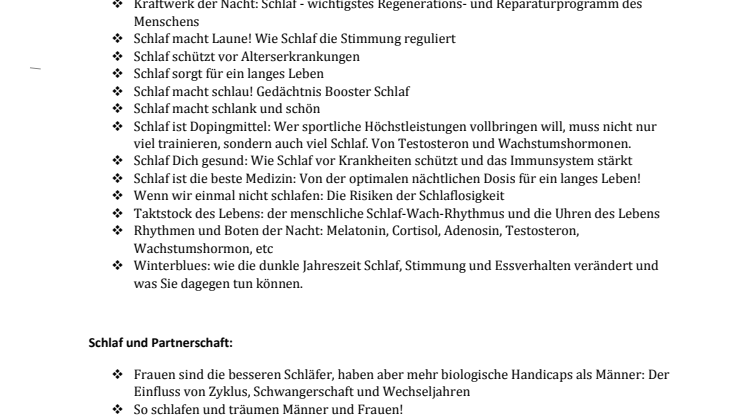 Gerne schicke ich Ihnen die PDF-Fahnen zu, merke Sie für ein Rezensionsexemplar vor und vermittle ein Interview mit Hans-Günter Weeß. Angehängt finden Sie eine Auflistung der schlafspezifischen Themen, die die Expertise von Hans-Günter Weeß abdeckt.