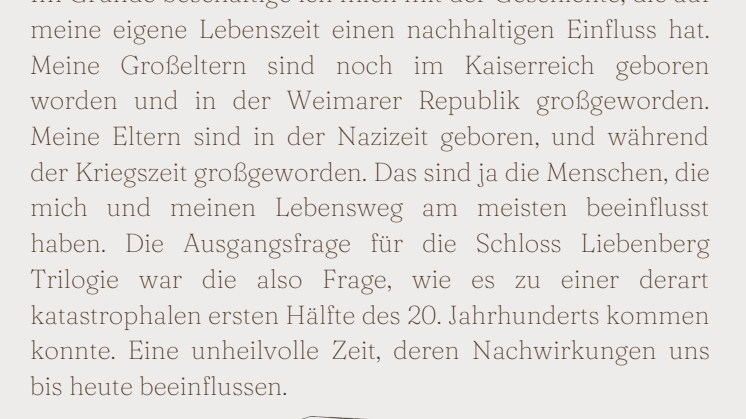 Der Auftaktband “Schloss Liebenberg - Hinter dem hellen Schein” begeisterte Ende letzten Jahres zahlreiche Leser*innen und Medien: “Als Spiegel der Hofgesellschaft und als Chronik der kleinen Leute wird die jüngere deutsche Geschichte lebendig”, urteilte das Mini Magazin. Nun erscheint mit “Schloss Liebenberg. Hinter dem falschen Glanz” die Fortsetzung der großen Saga um ein Schloss in Mark Brandenburg, seine Herrschaften und Dienstboten. Anfang des 20. Jahrhunderts wird das Stubenmädchen Adelheid Zeuge der brisanten Eulenburg-Affäre, eines der größten Skandale des deutschen Kaiserreichs, und Kaiser Wilhelm II. fast zu Fall brachte.