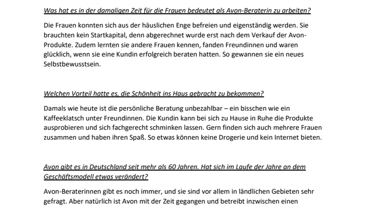 Doch Avon stand für weitaus mehr, als nur schöne Kosmetik und heitere Geselligkeit. Indem Avon-Beraterinnen die Schönheit ins Haus brachten, ermöglichten sie vielen Hausfrauen, die zwischen Kirche und Küche gefangen waren, den Glanz der weiten Welt hautnah zu erleben. Häusliche Sorgen konnten für kurze Zeit vergessen und Zeit für sich selbst genommen werden. Gleichzeitig galt der Kosmetik-Konzern als Sprungbrett in Richtung Freiheit, denn gerade hier wurde insbesondere Frauen die Chance gegeben, einen Beruf zu ergreifen. Als Beraterinnen für Avon ermöglichten sie sich nicht nur finanzielle Unabhängigkeit, sondern gelten bis heute als Vorreiterinnen der modernen Beauty-Influencer*innen.