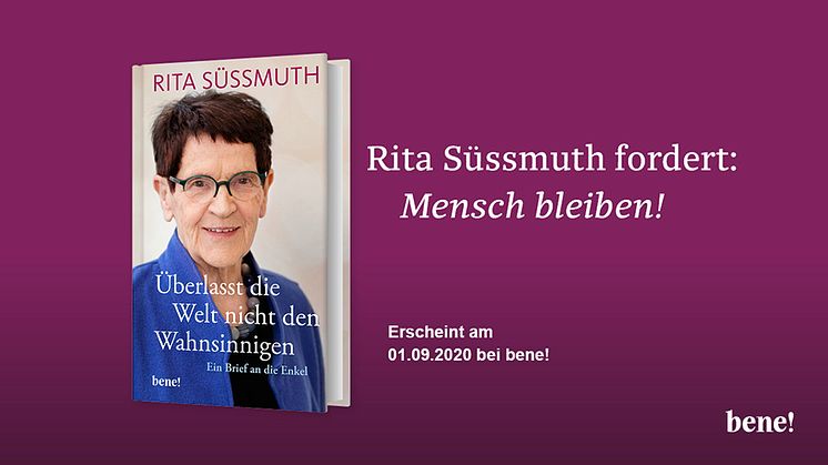 Rita Süssmuths neues Buch »Überlasst die Welt nicht den Wahnsinnigen«, das am 1. September im bene! Verlag erscheint, kommt genau zur richtigen Zeit und ist ein Aufruf an nachfolgende Generationen, ihr Schicksal nicht Blendern, Machtversessenen und Zynikern zu überlassen: