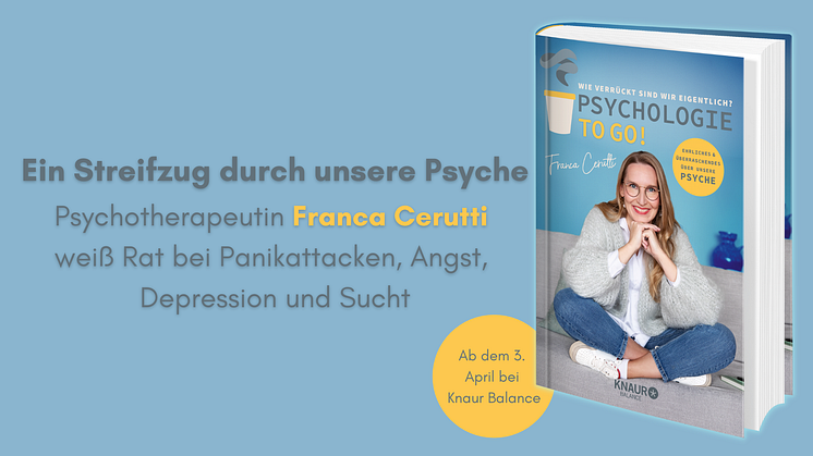 "Psychologie to go!" erscheint am 3. April bei Knaur Balance. Bei Interesse merke ich Sie gern für ein Rezensionsexemplar vor oder sende Ihnen die Fahne vorab. Franca Cerutti steht für Interviews zur Verfügung oder auch als Expertin für Ihre Psychologie-Rubrik.