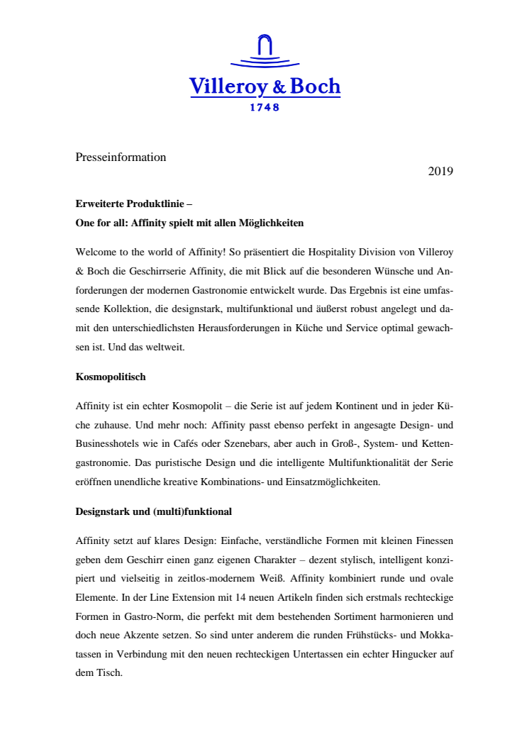 Welcome to the world of Affinity! So präsentiert die Hospitality Division von Villeroy & Boch die Geschirrserie Affinity, die mit Blick auf die besonderen Wünsche und Anforderungen der modernen Gastronomie entwickelt wurde.