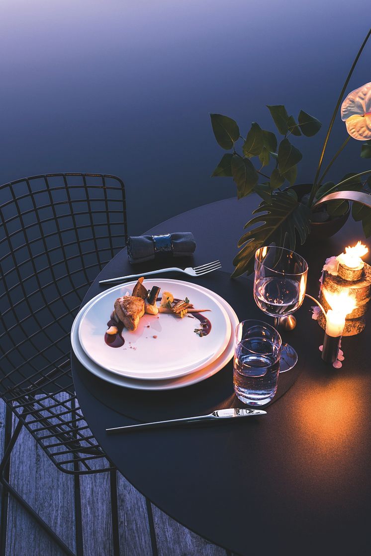 Ob Cocktailparty oder Mondscheindinner, den Auftakt macht ein kühler Drink – gerne fruchtig und ohne Alkohol, aber auf alle Fälle serviert in besonderen Gläsern mit ungewöhnlichem Design, in denen sich die feinen Aromen voll entfalten können. Beim anschließenden Mondscheindinner sorgt die Kollektion NewMoon mit ihrem vom Mond inspirierten Design für einen exklusiven Look. Klare Linien formen eine Mondsichel aus weißem Premium Porcelain und machen die Kollektion damit so facettenreich und mystisch, wie es der Erdtrabant ist, der die Menschen seit Jahrtausenden fasziniert. Die unkonventionellen Gläser aus klarem Kristallglas sind am oberen Rand markant abgeschrägt und sind so ein zusätzlicher Hingucker auf dem Tisch.