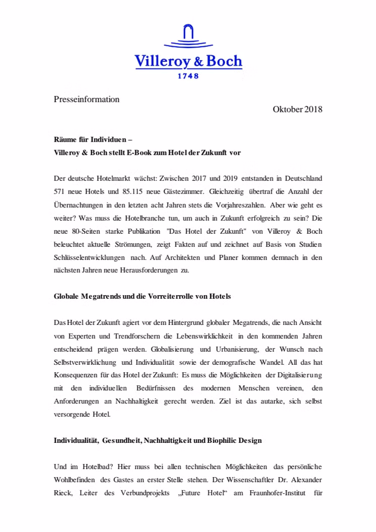 • Räume für Individuen – Villeroy & Boch stellt E-Book zum Hotel der Zukunft vor