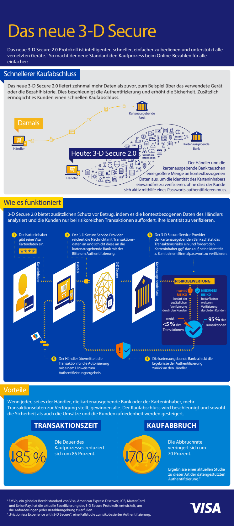 Visa (NYSE:V) hat Erweiterungen für Verified by Visa angekündigt. Der globale Service macht Online-Einkäufe noch sicherer und sorgt dafür, dass Zahlungen nur vom rechtmäßigen Inhaber des jeweiligen Kontos vorgenommen werden können. Die neue Version bietet Finanzinstituten und Händlern eine bessere Lösung für die Authentifizierung ihrer Kunden.