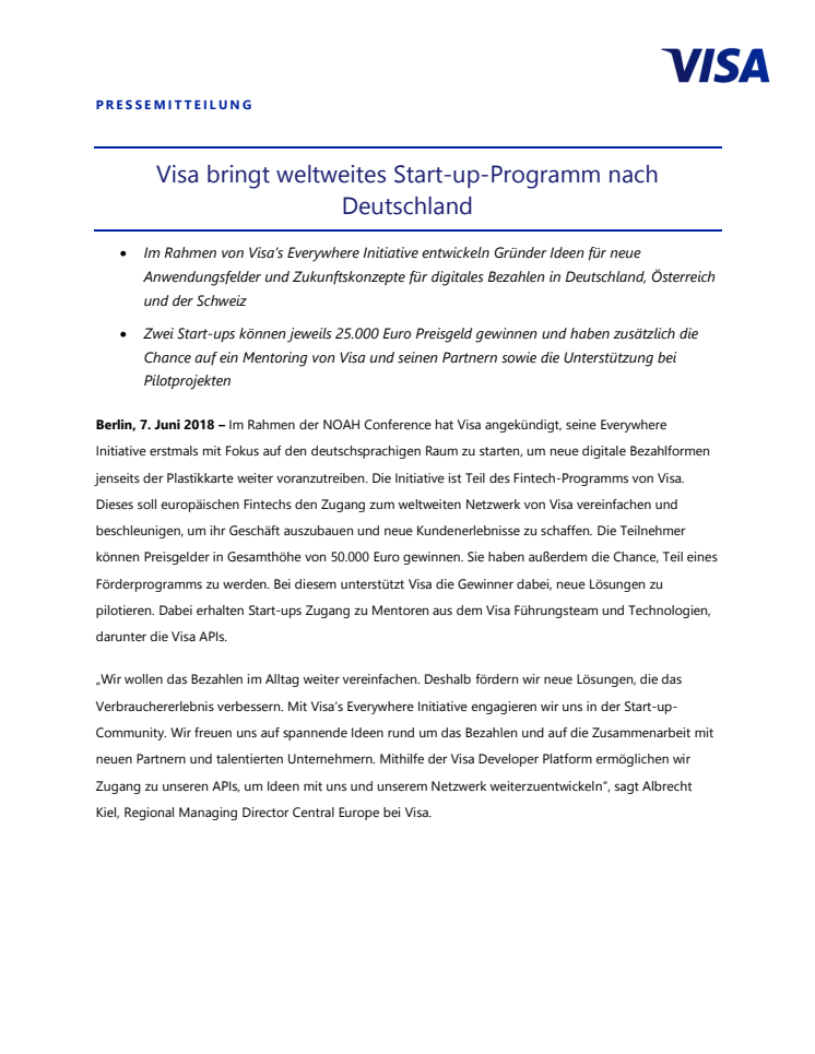 Visa bringt weltweites Start-up-Programm nach Deutschland