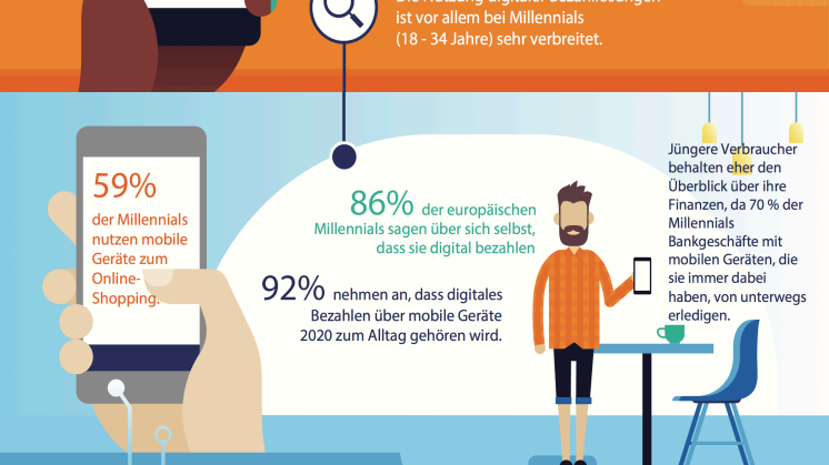- 92 % der befragten Millennials nehmen an, dass digitales Bezahlen in drei Jahren zum Alltag gehören wird und sie es nutzen werden – in Deutschland sind dies 86 %.