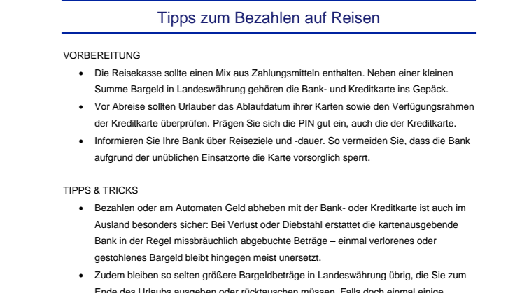 Der Pressemitteilung liegen ein Dokument mit Tipps zum Bezahlen im Ausland sowie zwei Fotos von Bezahlsituationen im Sommerurlaub bei. Alle Fotos finden Sie auch unter: Bilder.