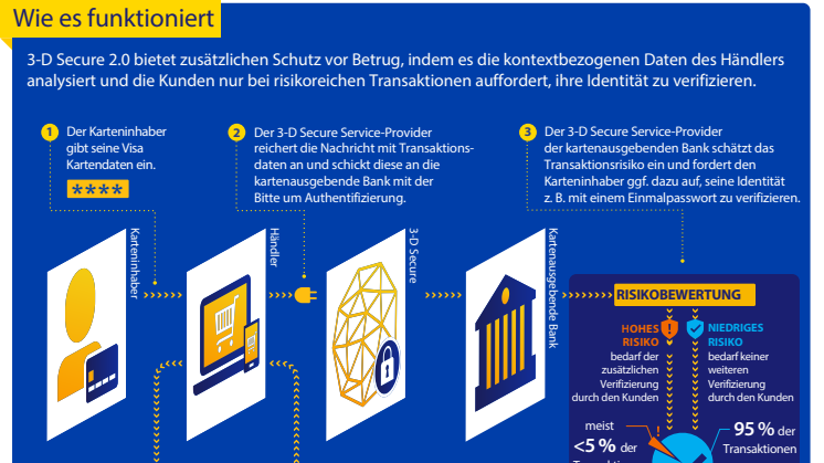 [1] Dies betrifft alle Regionen. Der existierende Schutz vor Betrug, basierend auf 3-D Secure 1.0, wird weiterbestehen.