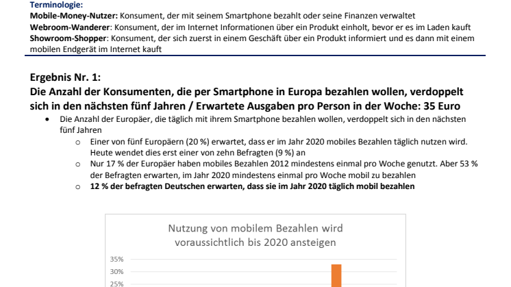 - Konsumentenstudie: Mobiles Bezahlen wird sich in Deutschland in den nächsten fünf Jahren verdoppeln. Verbraucher nehmen neue Bezahl-Möglichkeiten an und geben höhere Beträge mit mobilen Endgeräten aus